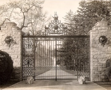 Forged bronze driveway gates, motif of Washington Irving's characters