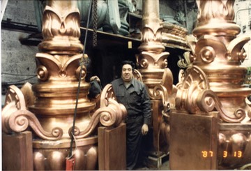 Bruno Ranieri stand proudly with spires before they leave the shop for installation
